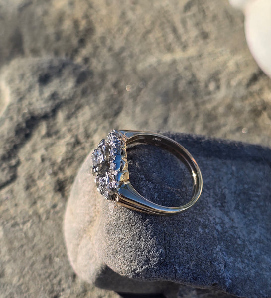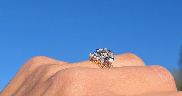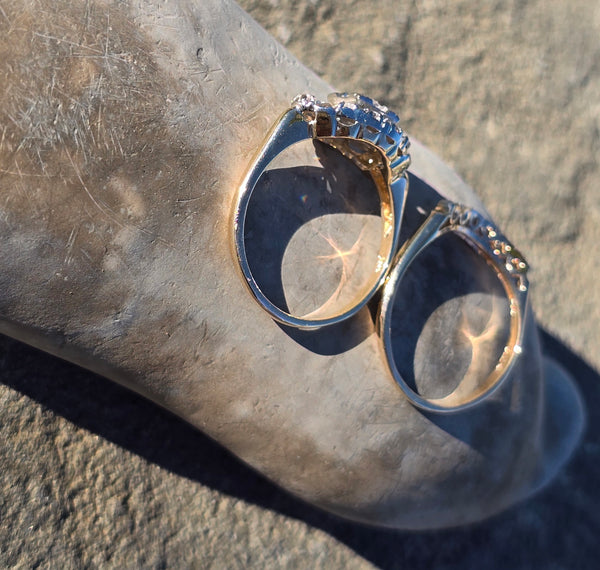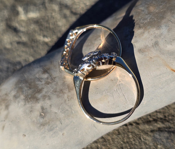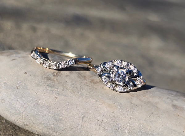 - 14k white gold Art Deco antique diamond 2-piece curved band bridal set - can easily be soldered together
