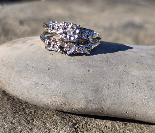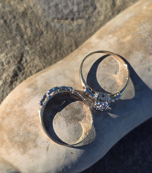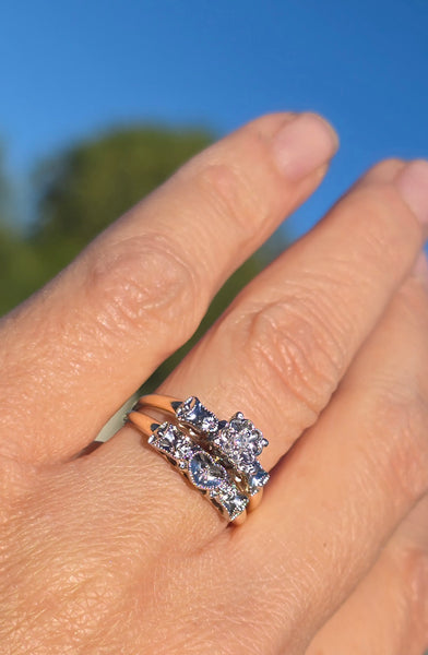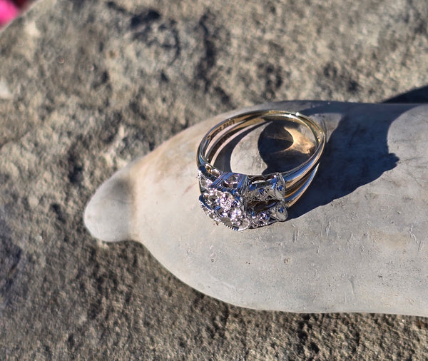 - 14k gold two tone 2-piece mid-century bridal estate bridal set