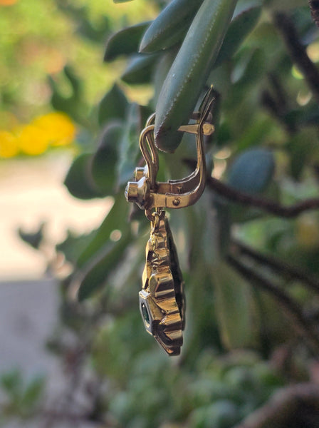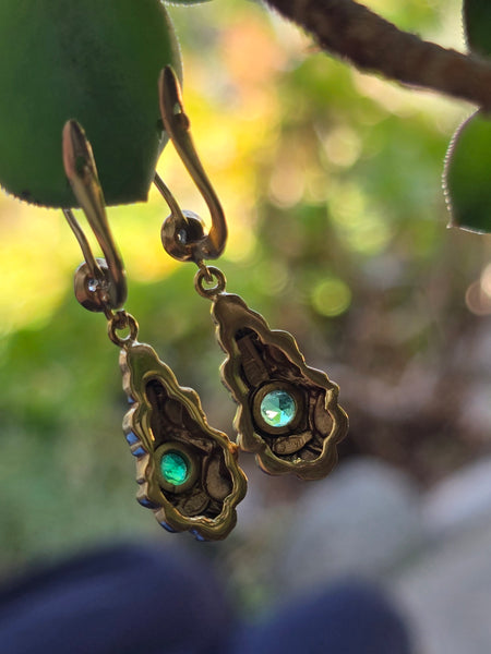 12k gold emerald & diamond DECO estate lever back earrings