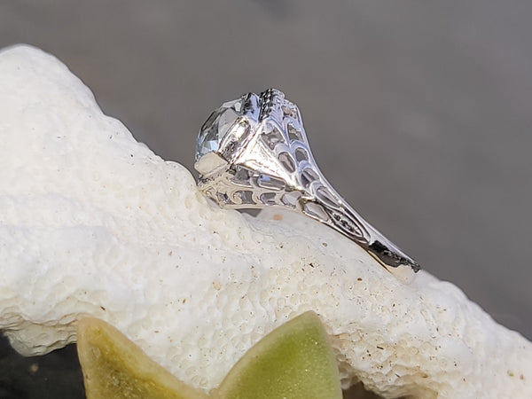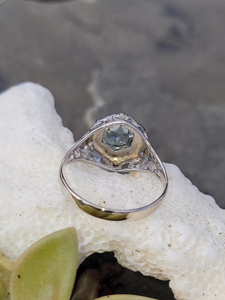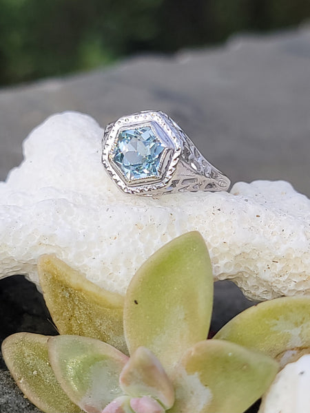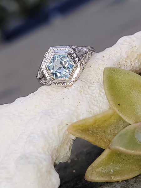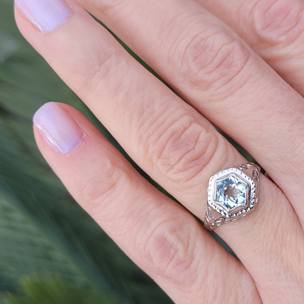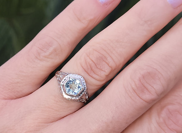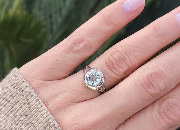 - 1.22ct genuine aquamarine - rare hexagon cut - original stone repolished weighed loose