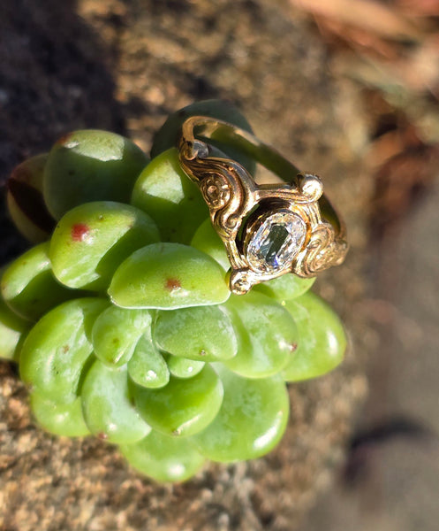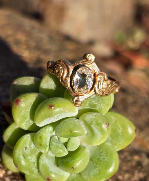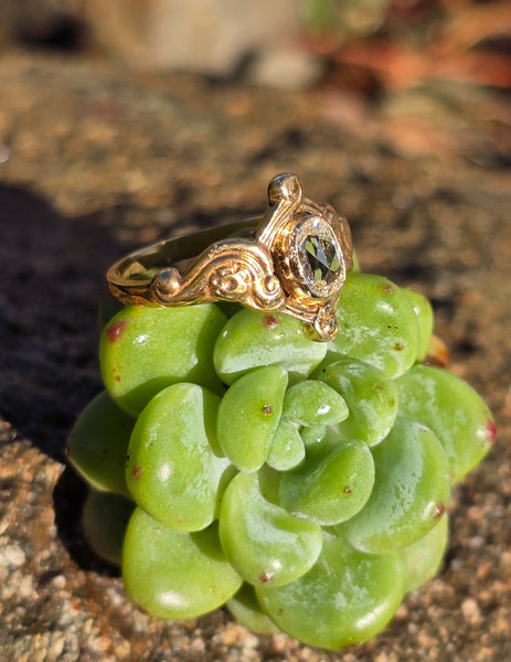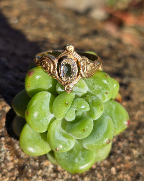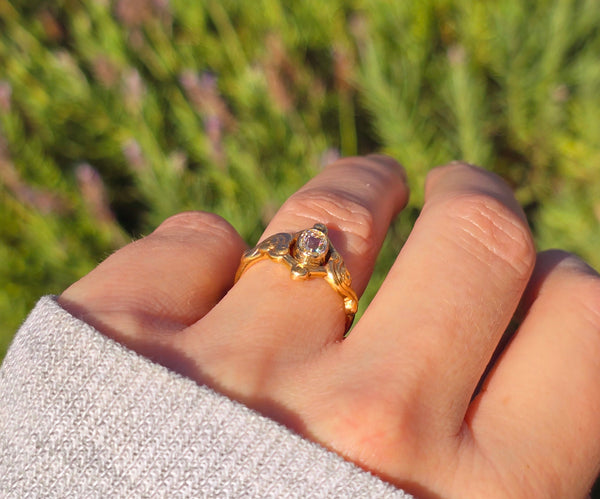 14k gold Nouveau - Edwardian old cut diamond wedding engagement ring