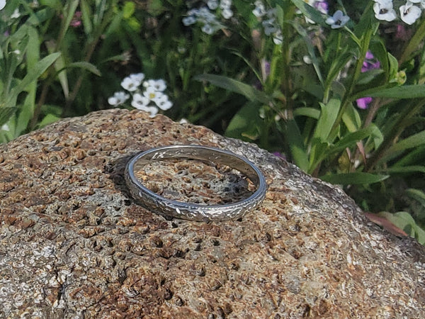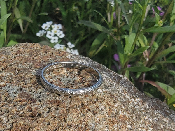 18k white gold BELAIS estate floral flower wedding band - size 8