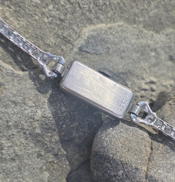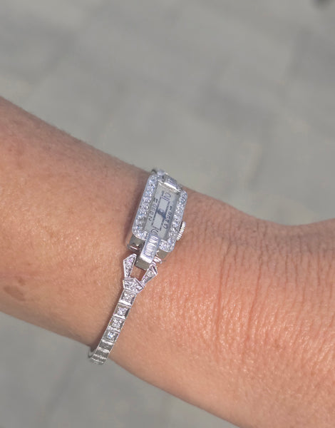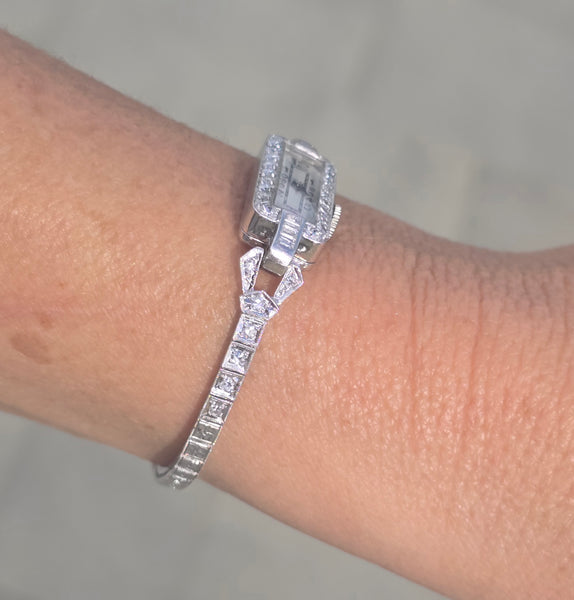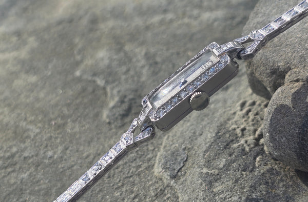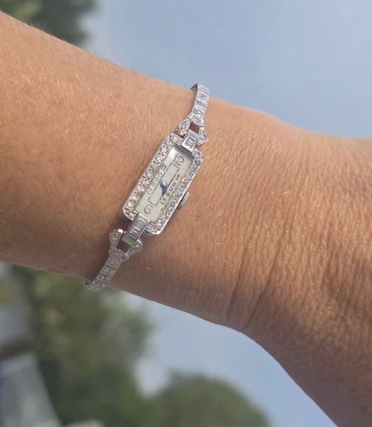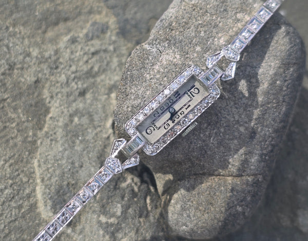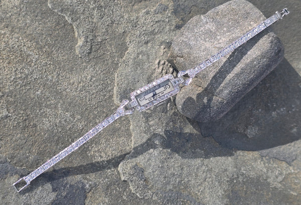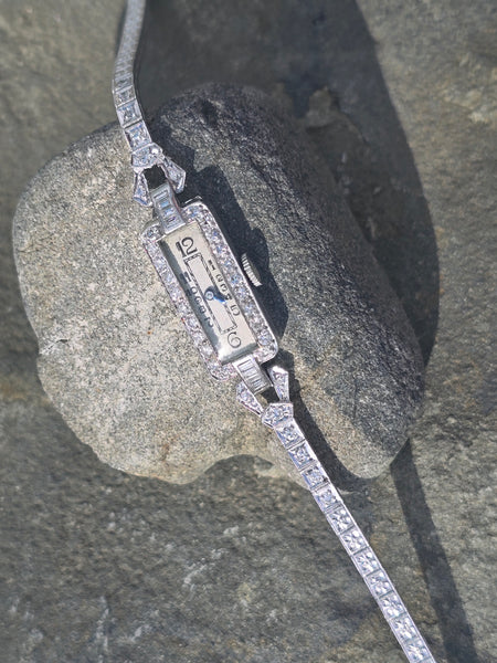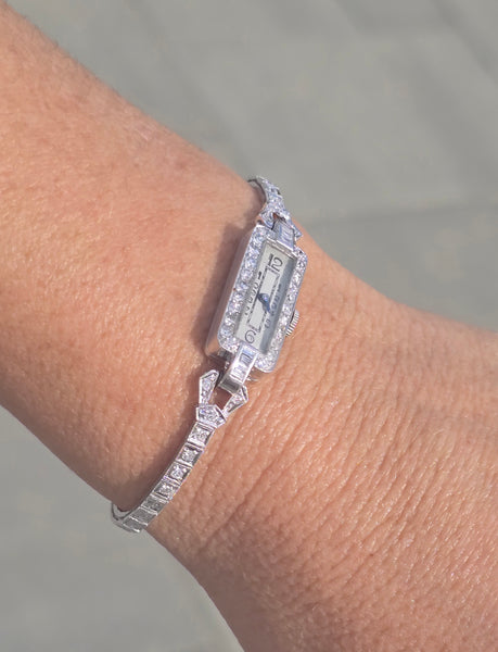 • platinum case - 14k white gold band vintage Art Deco diamond antique watch