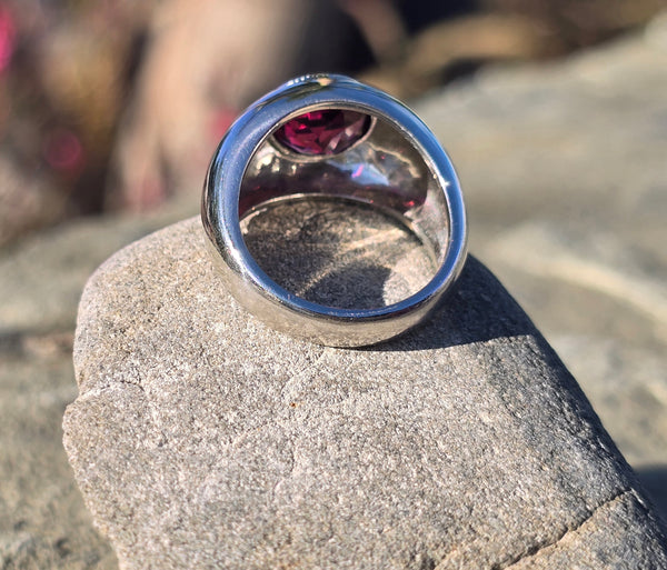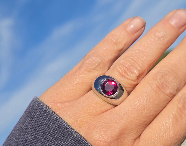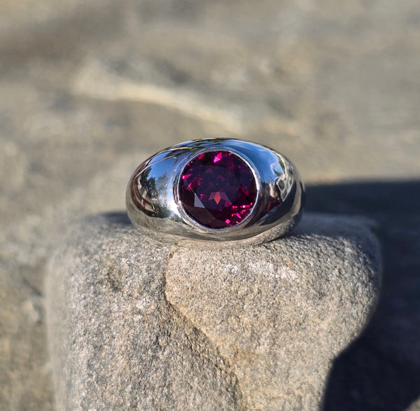 - platinum garnet solitaire gypsy estate ring