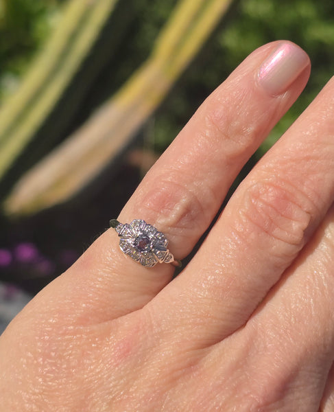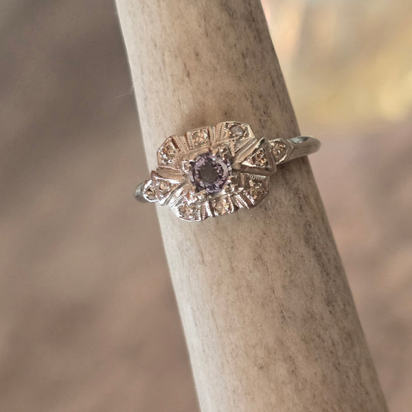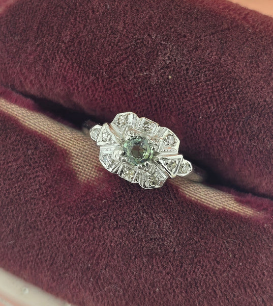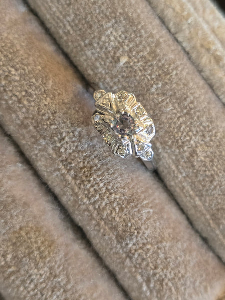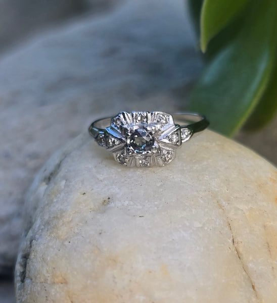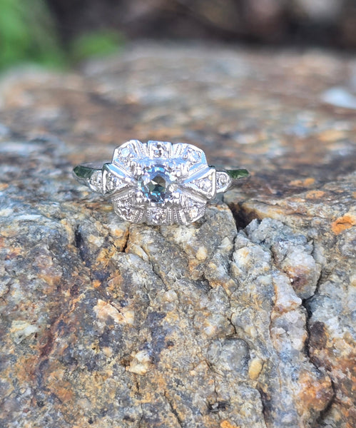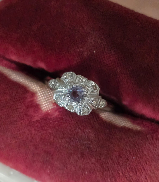 - Platinum color changing natural Brazilian alexandrite diamond Art Deco c.1920's estate ring