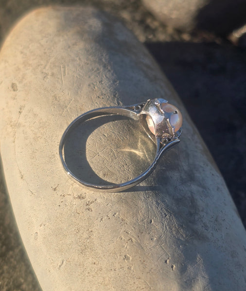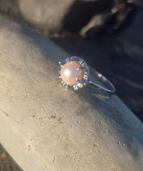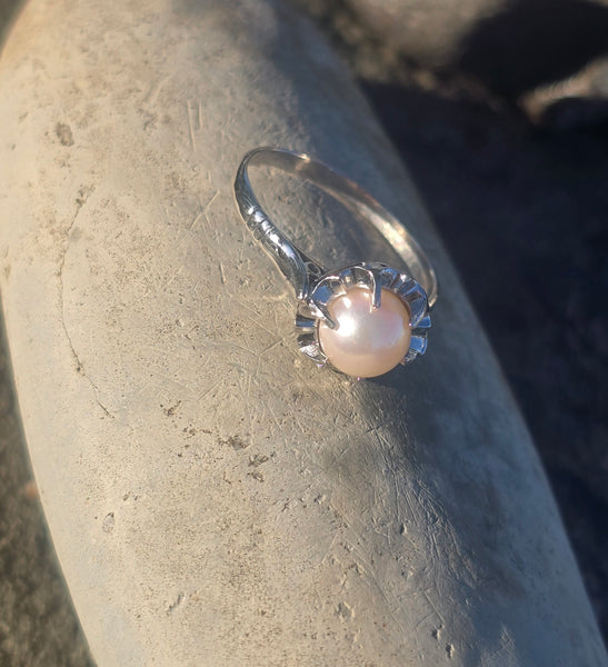 Platinum Deco estate pearl solitaire antique ring