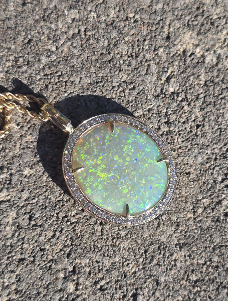 - 14k gold high qualit Australian opal & diamond reversable necklace pendant enhancer