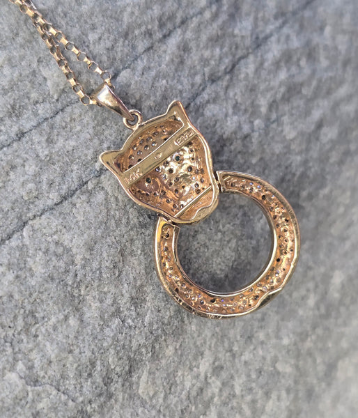 - 14k EFFY panther door knocker diamond and emerald pendant necklace