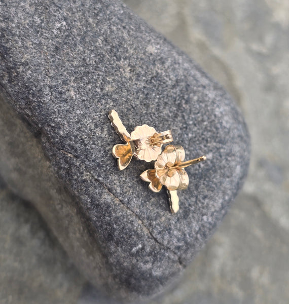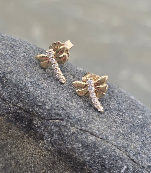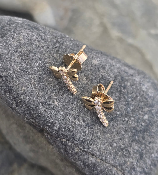 14k gold diamond dragonfly stud earrings - new