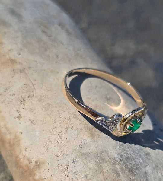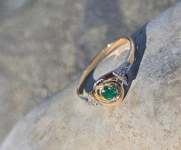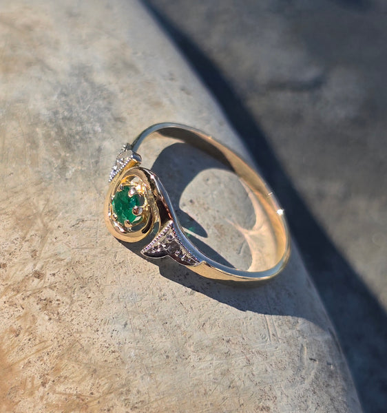 - 18ct two-tone gold emerald antique ring - French hallamrks