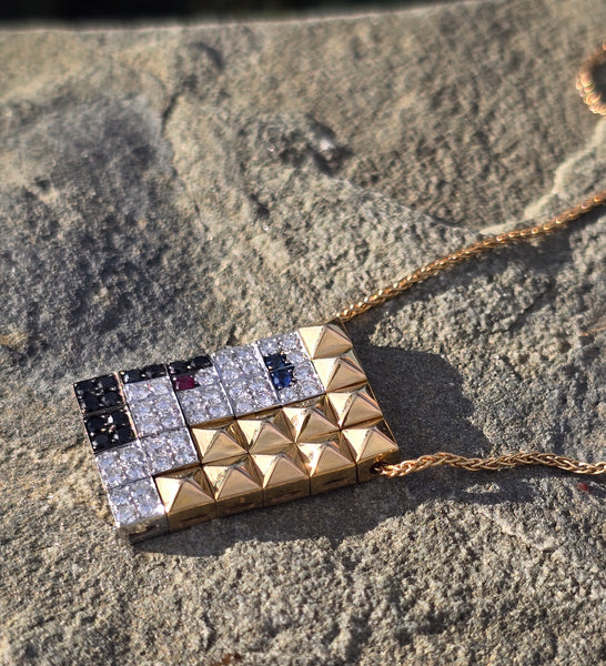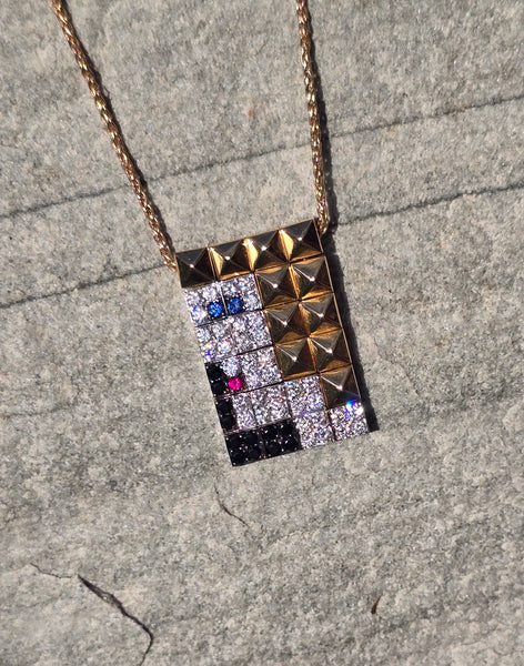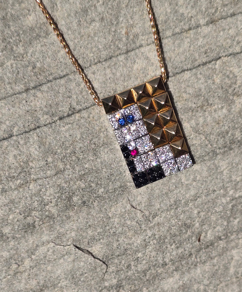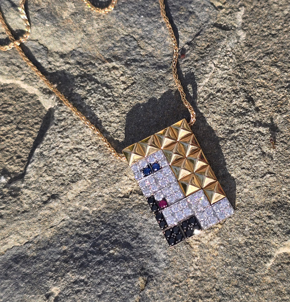 - 18k gold Bulgari Enigma diamond sapphire ruby lady movable face vintage pendant necklace