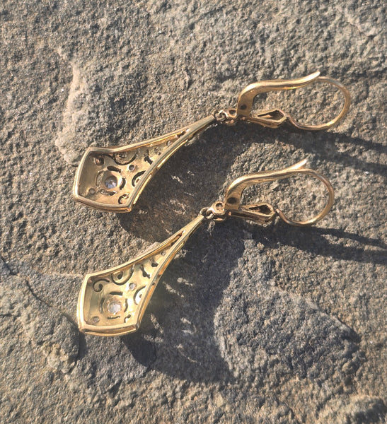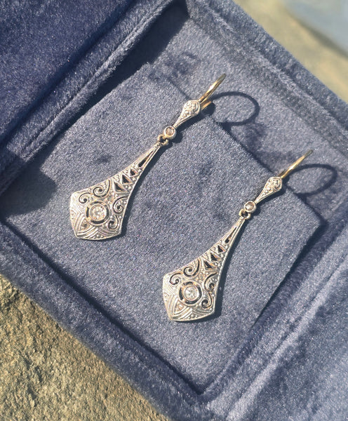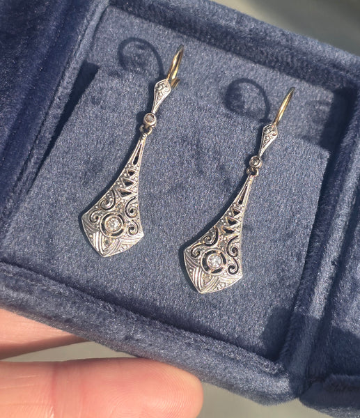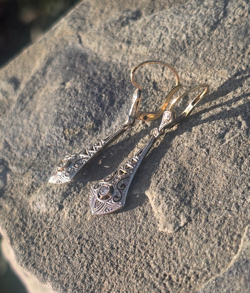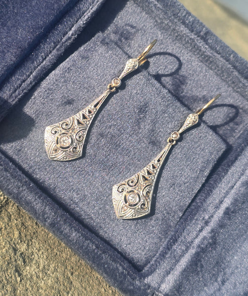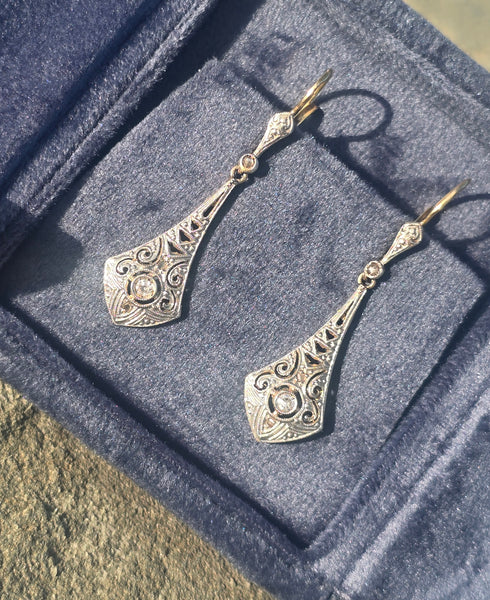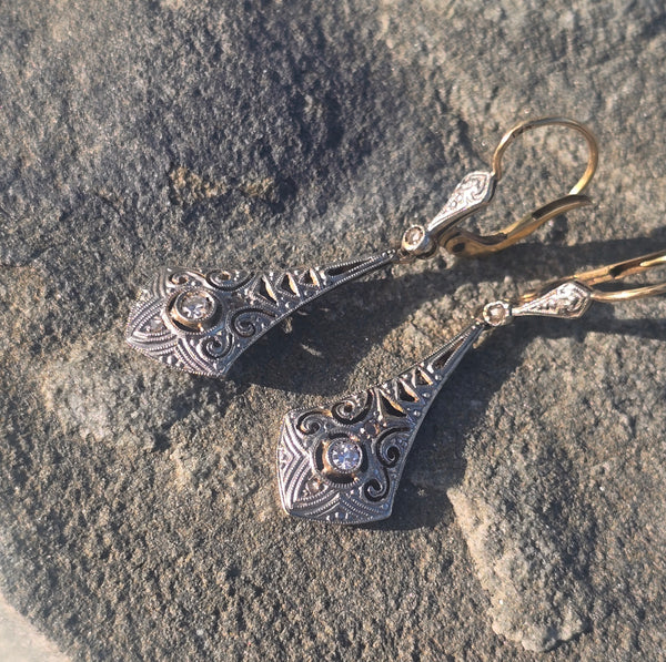 - platinum & 18ct gold two tone antique Deco c.20's - 30's diamond earrings