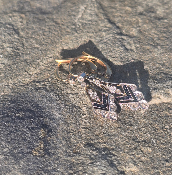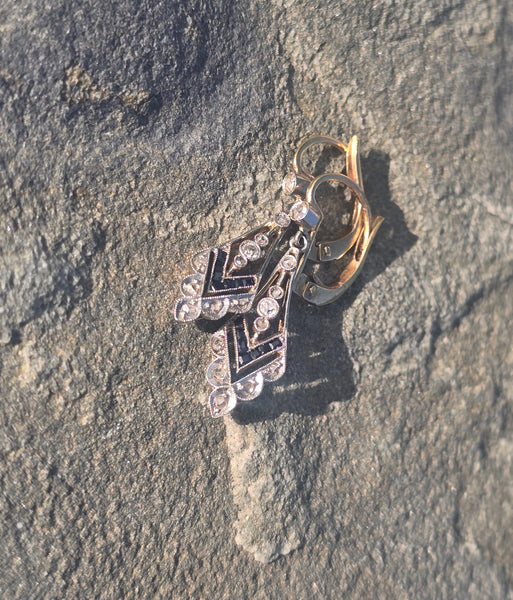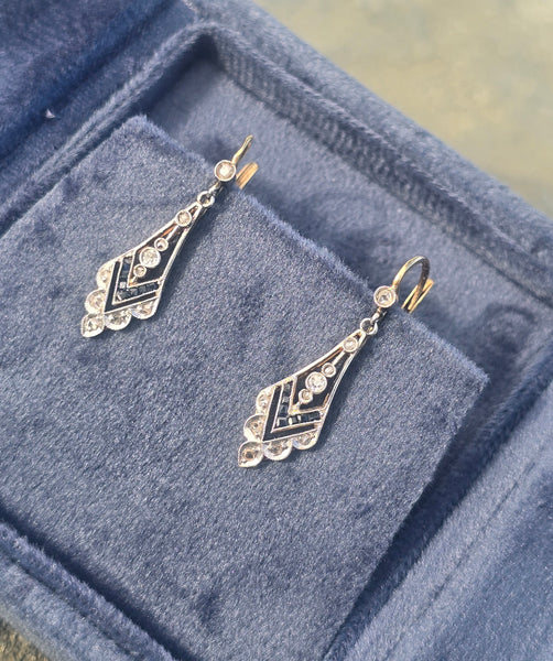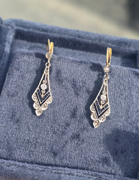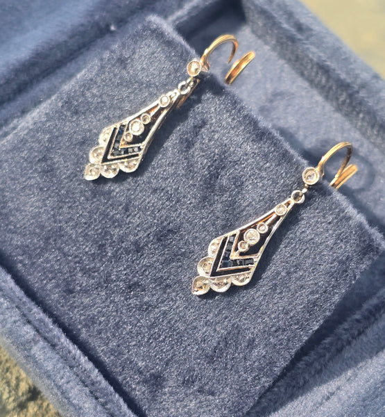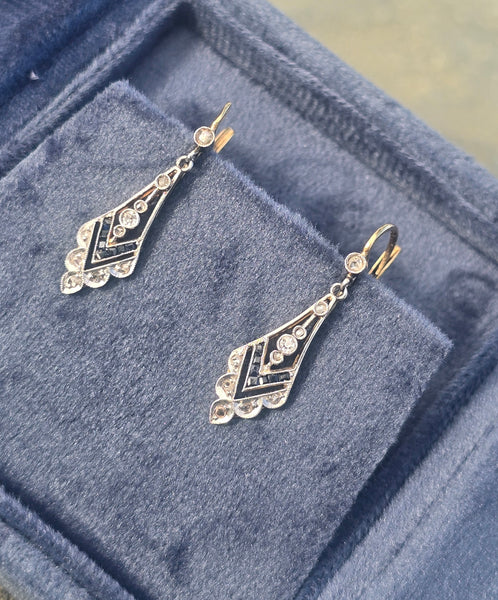 - platinum top & 18ct yellow gold dangling ART DECO all original estate earrings - c.1920's - c.1930's