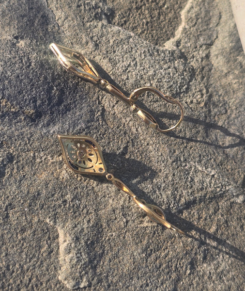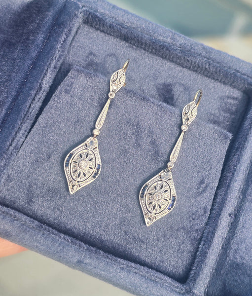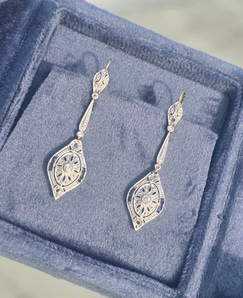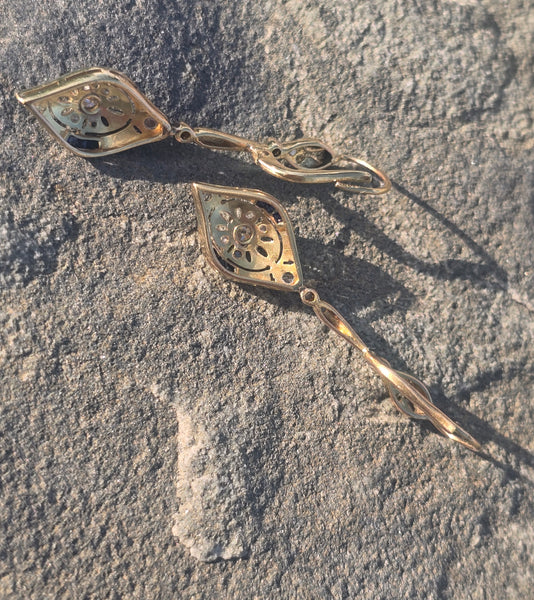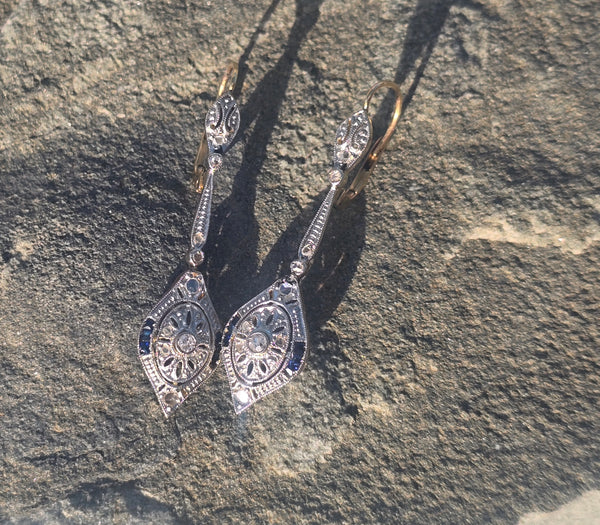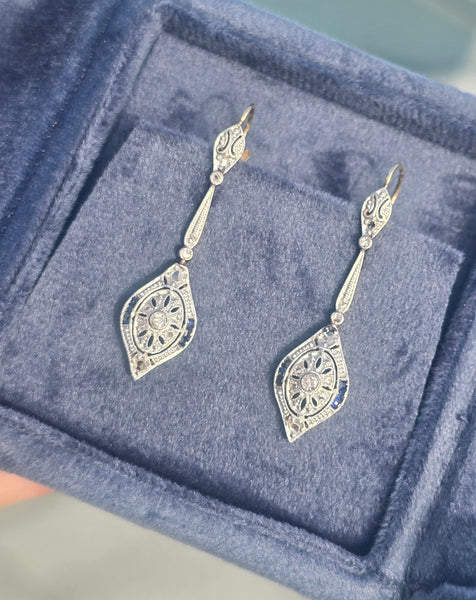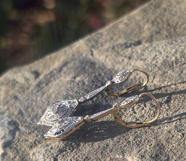 18ct yellow gold dangling ART DECO all original estate earrings - c.1920's - c.1930's