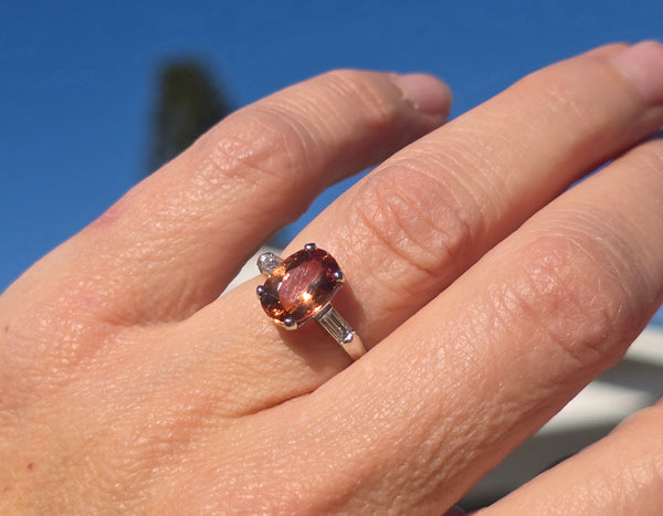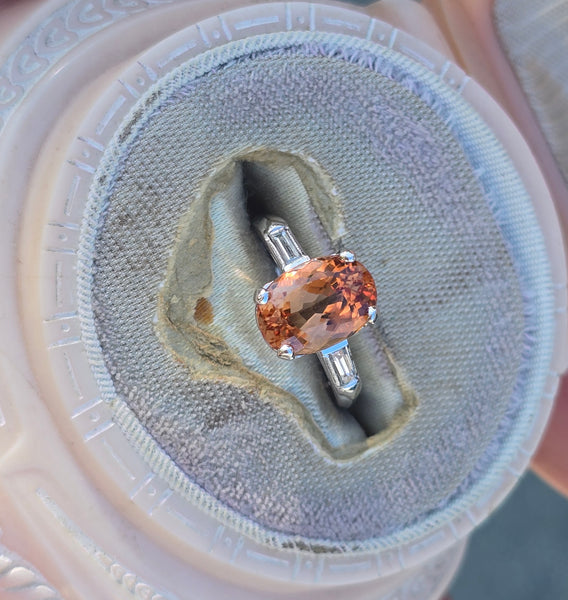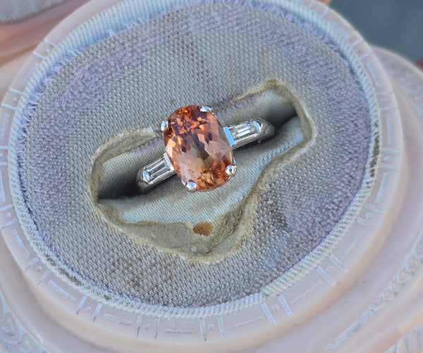 - Platinum natural imperial topaz and diamond estate ring