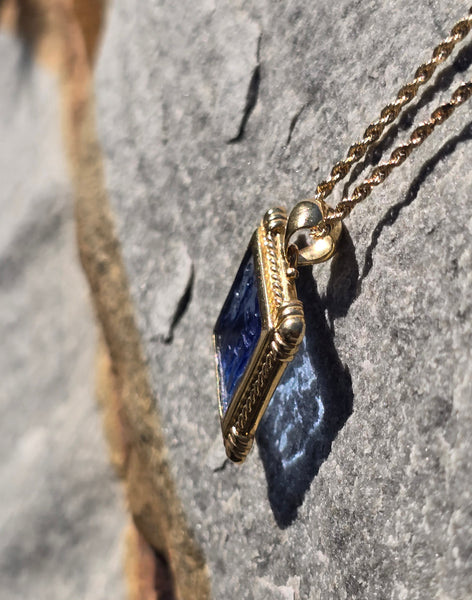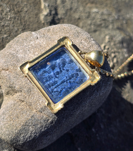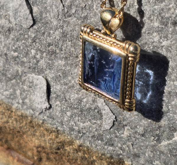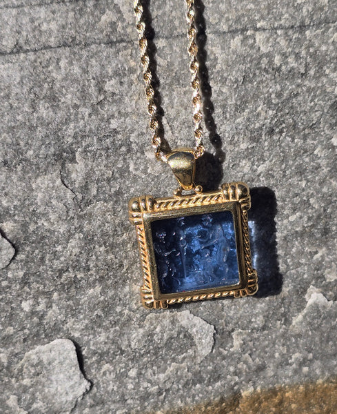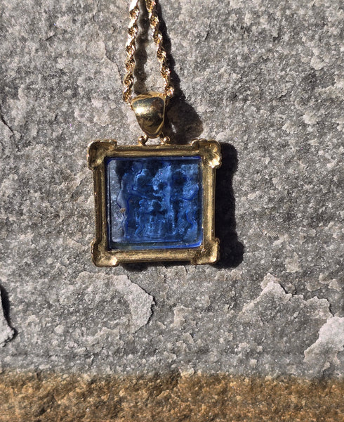 - 18k yellow gold etched glass estate picture frame pendant necklace