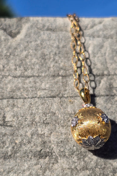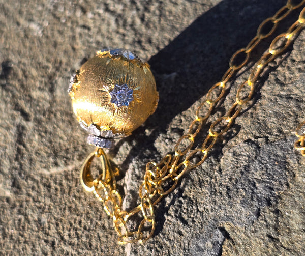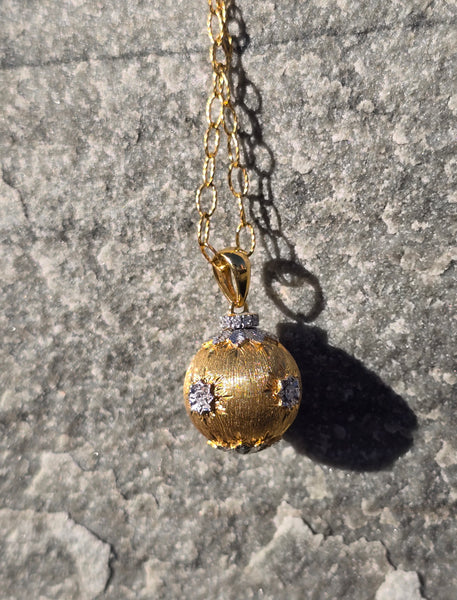 - 18k yellow gold diamond estate ball pendant necklace