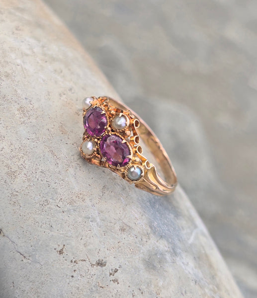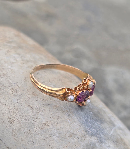 15ct gold Victorian pearl & garnet antique vintage estate ring