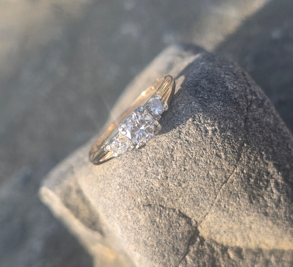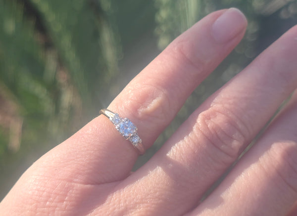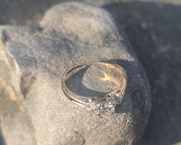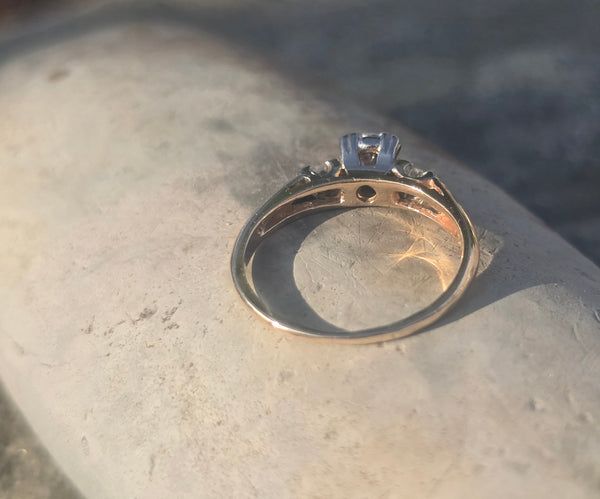 - 14k gold two tone diamond solitaire engagement ring - illusion head - floral motif