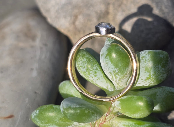 • Platinum bezel & 18k gold old cut diamond solitaire engagement ring