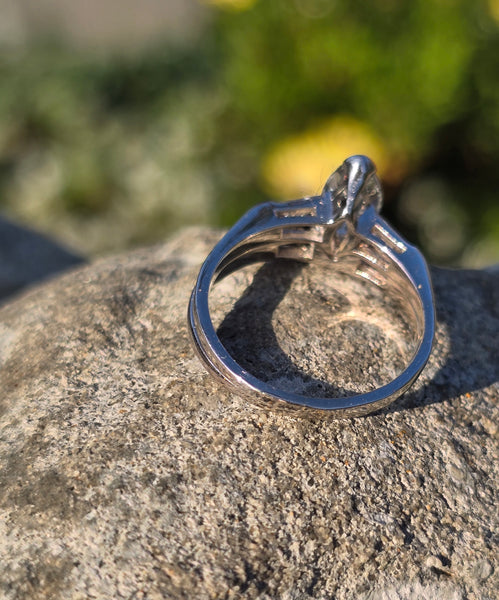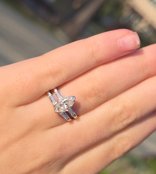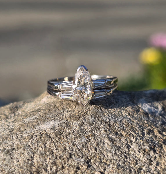 - 14k white gold marquise diamond estate bridal set - engagement ring