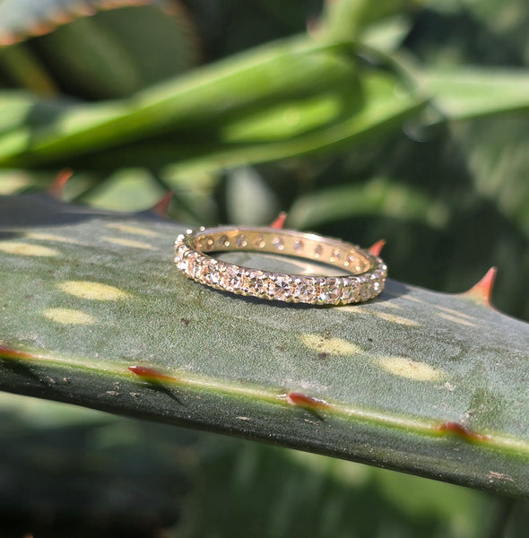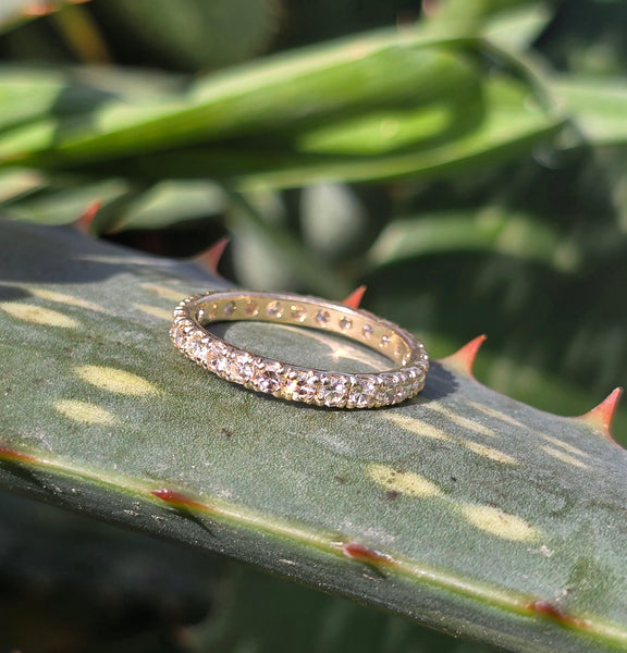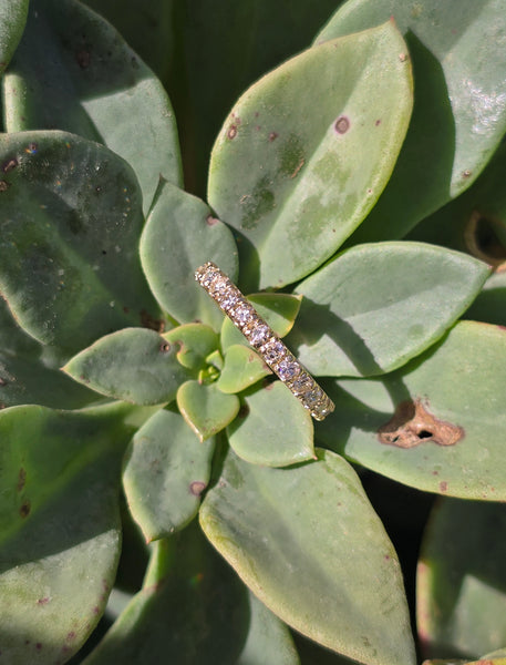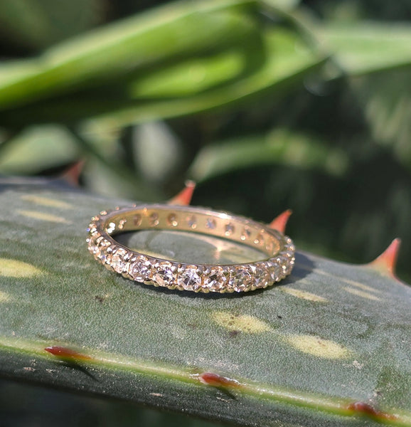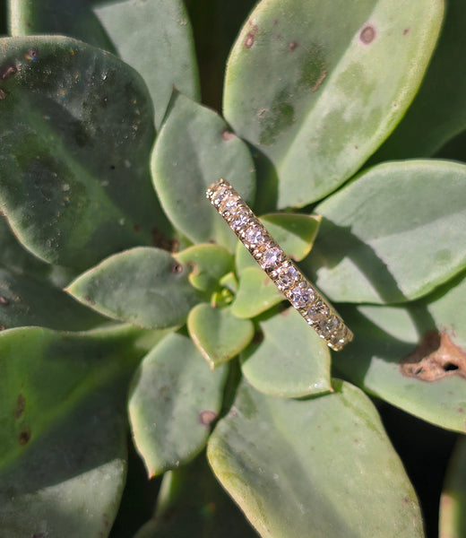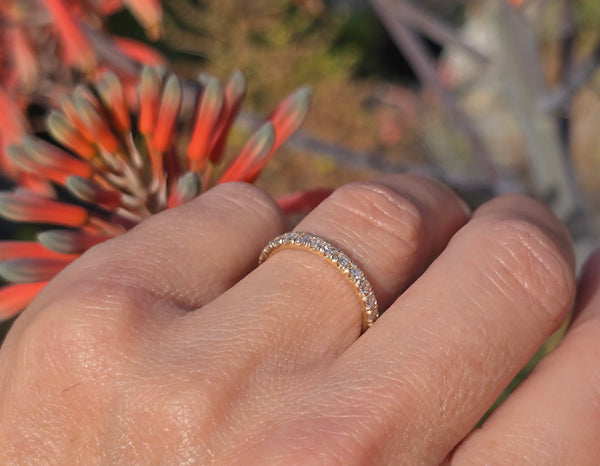 - 14k yellow gold French set diamond eternity wedding band - stackable