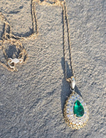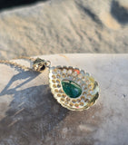 - 14k gold emerald, enamel & rose cut diamond antique pendant necklace
