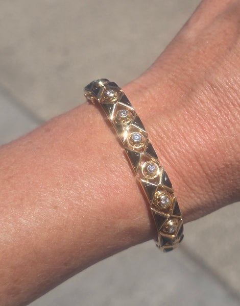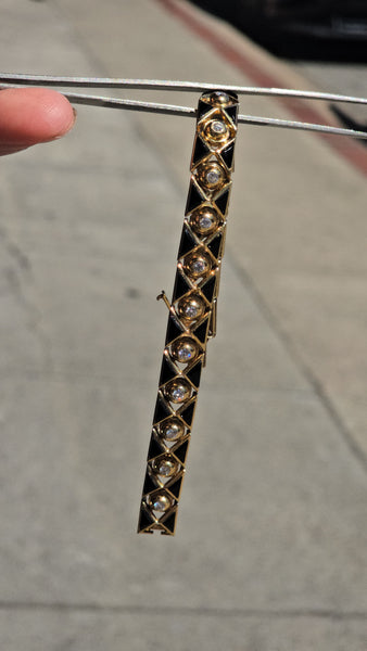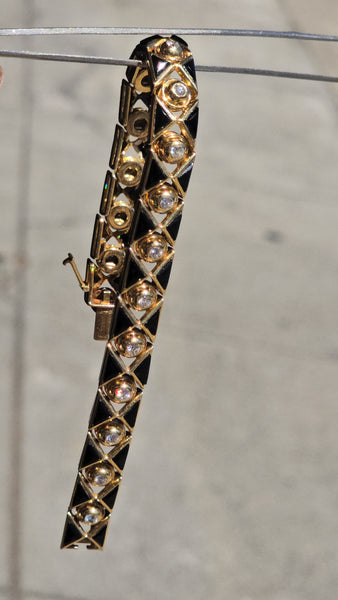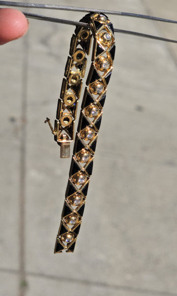 - 18k gold black enamel & diamond estate bracelet - 7"
