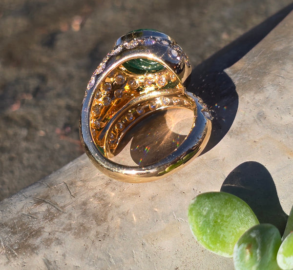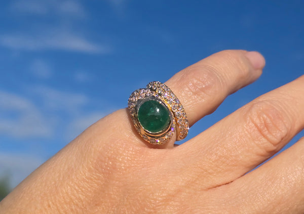 - 18k yellow gold emerald & diamond estate ring