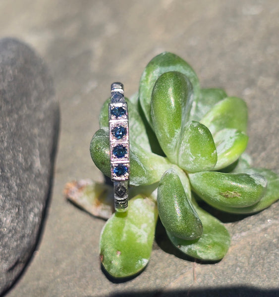 - 4 round cut blue sapphires = apx .15ct tw (by measurement)