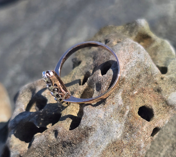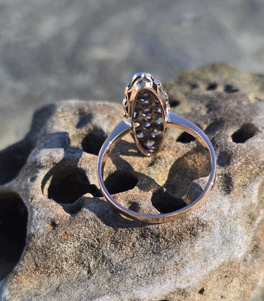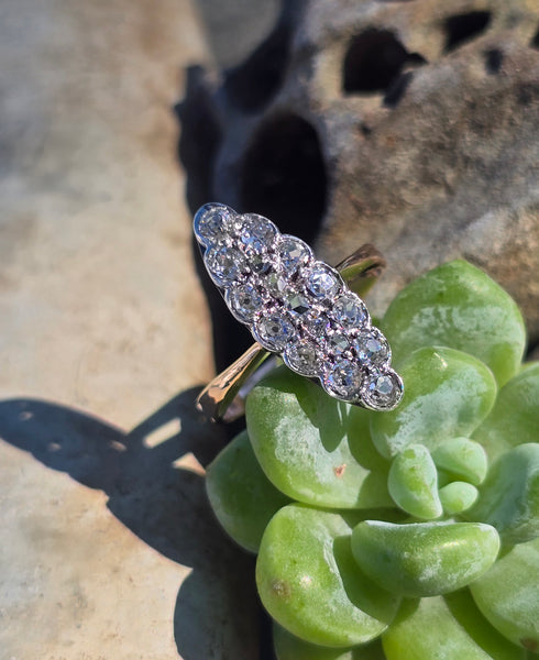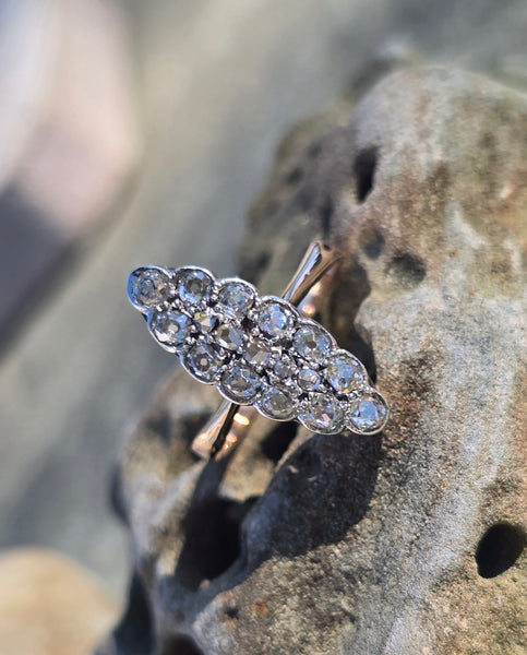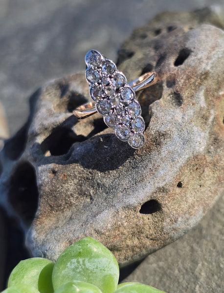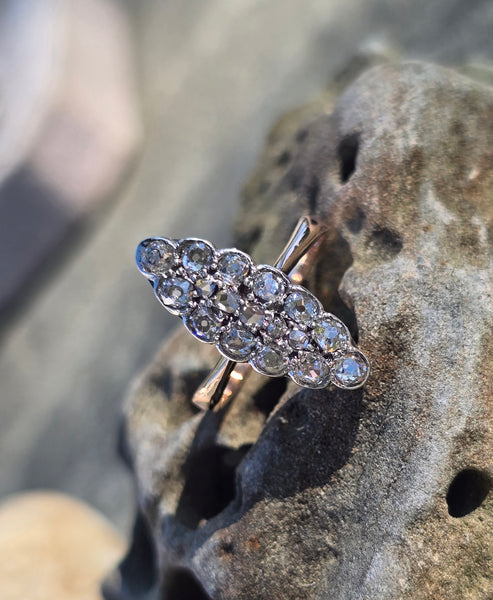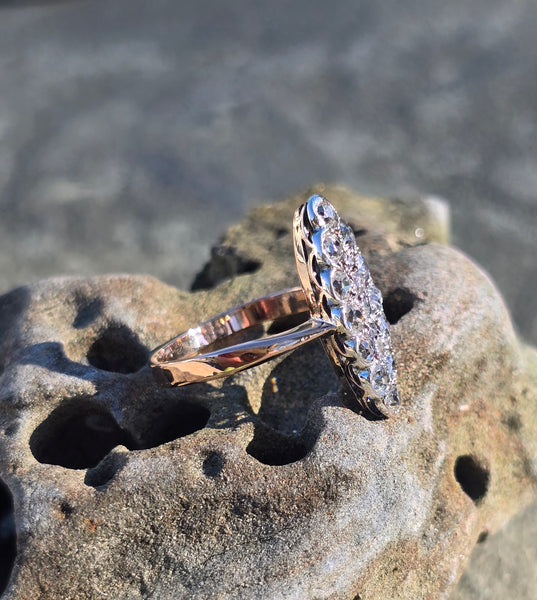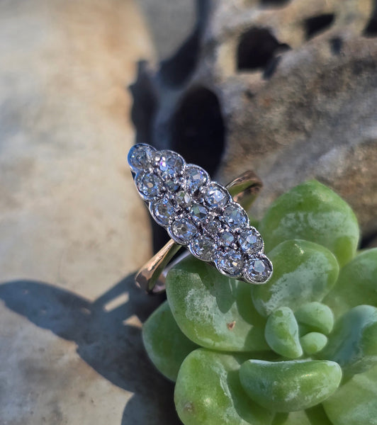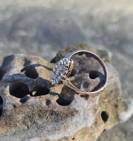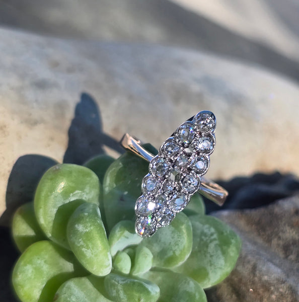 - Victorian silver top & 14k gold two-tone old cut diamond navette antique ring