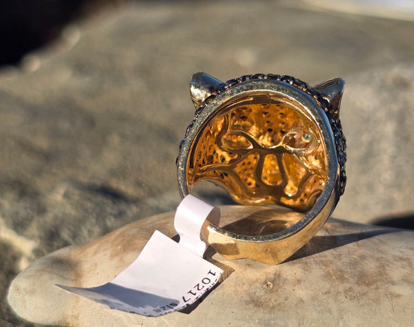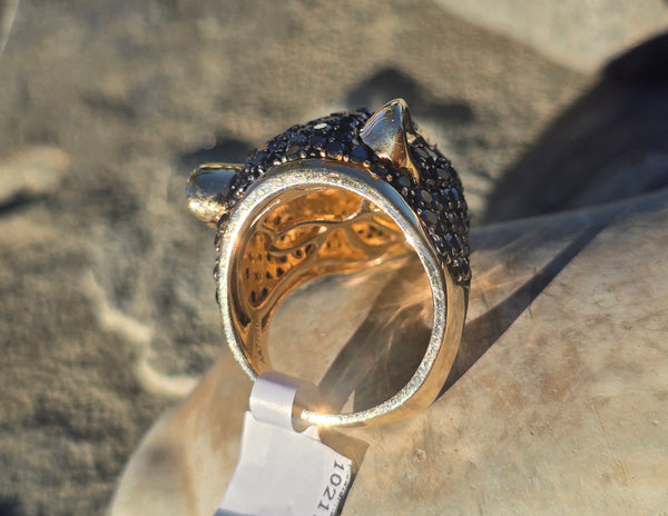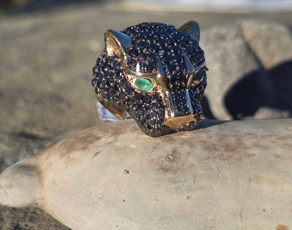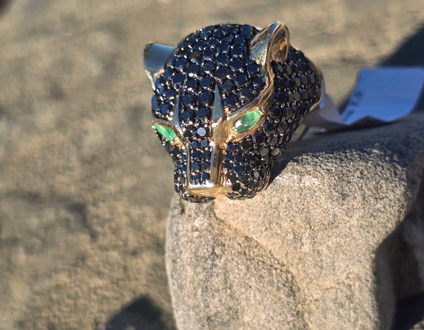 - 14k EFFY Collector's Edition panther diamond and emerald ring AA77/100