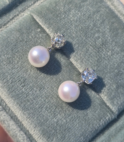 - platinum 18ct gold two tone diamond estate earrings