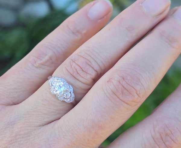 - platinum Art Deco filigree c.1920's diamond estate antique ring