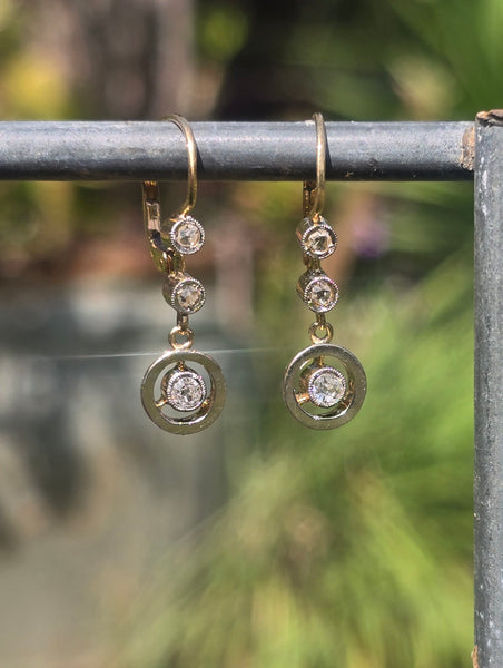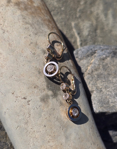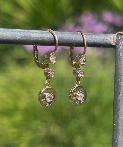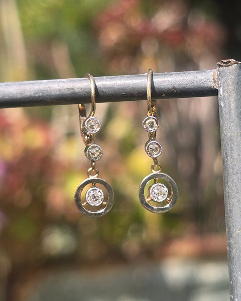 - platinum and gold two tone floral diamond estate c.1900 - 1920's antique earrings