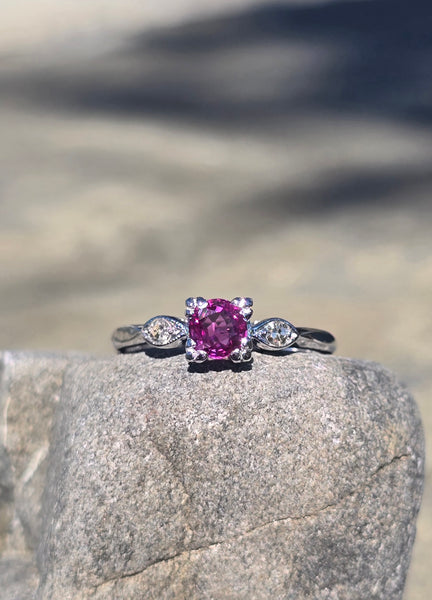 - platinum pink sapphire & diamond ring - engagement / wedding
